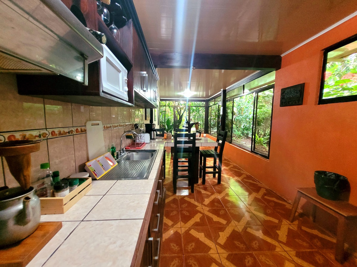 Denna dolda pärla, bara 10 minuter från La Fortuna är den perfekta blandningen av integritet, natur och Costa Ricas vackraste flora och fauna. Om du är en naturälskare, särskilt till fågelskådning, är detta boende perfekt för dig, din familj och vänner. Njut av den autentiska costaricanska upplevelsen omgiven av scharlakansröda araer, tukaner och apor.