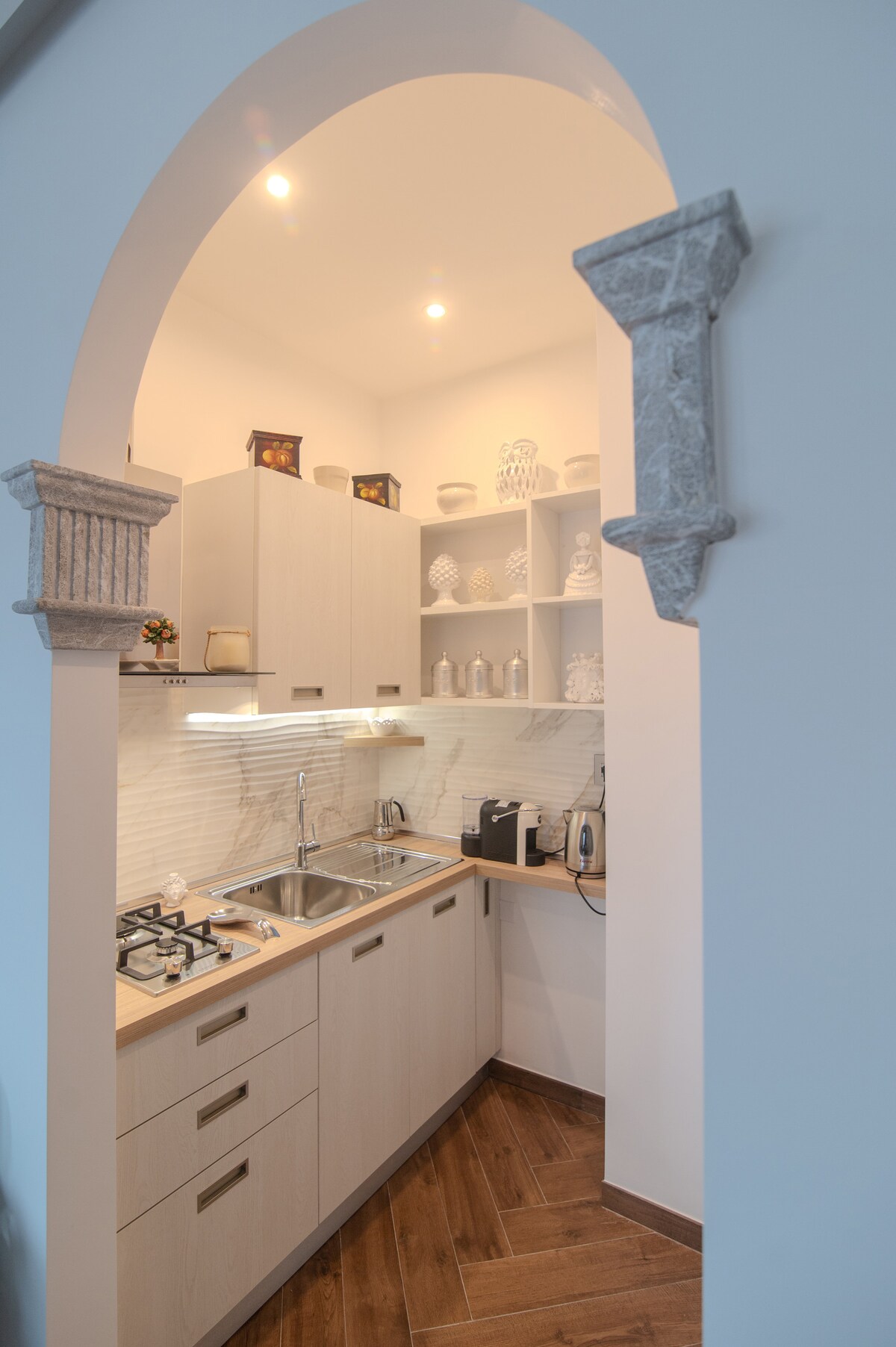 Exklusiv lägenhet på cirka 90 m2 med historiska välvda tak, i en prestigefylld historisk byggnad, belägen på första våningen, noggrant inredd för krävande resenärer. Beläget i centrum, i ett mycket prestigefyllt område i staden, bara några steg från Piazza Duomo, hjärtat av staden Catania och utgångspunkten för guidade turer till fots eller med turistbussar och tåg. Några steg från den eleganta Via Crociferi och Via Etnea, en explosion av arkitektur och barock atmosfär.
