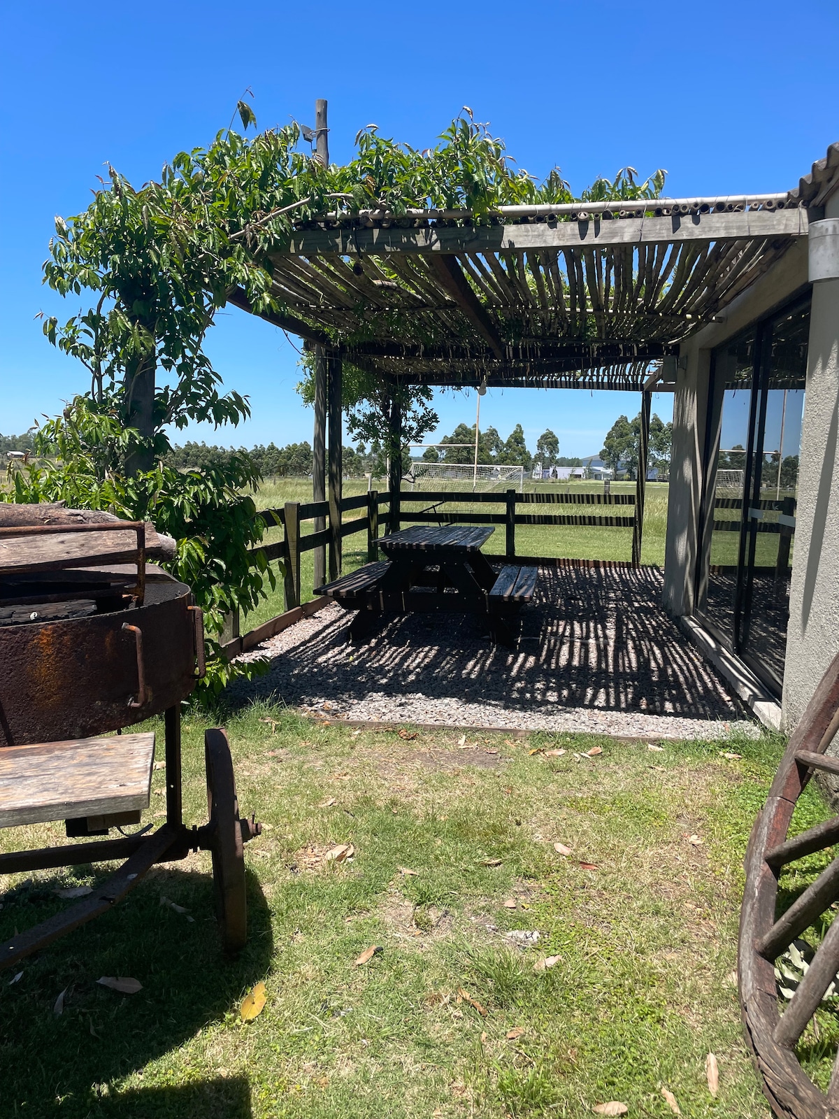 Hus på landet med en stor grill, i ett öppet utrymme på 8 hektar. Perfekt för att komma bort från stadens buller och få lite frisk luft. Fantastiska solnedgångar tack vare husets läge i ett något förhöjt område. Staden ligger 4 km bort, så du kommer att ha några problem med att komma åt stormarknader och andra tjänster. Vår inbjudan är att njuta av den avslappnade atmosfären, vackra eftermiddagar och otroliga stjärnklara kvällar. En enkel och minnesvärd vistelse, en unik resa.