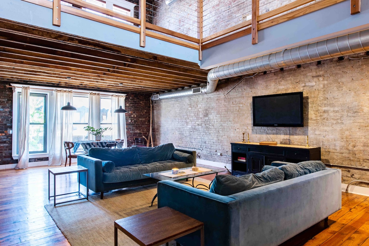Varva ner och njut av svepande flodutsikt på takterrassen medan du bor i denna privata takvåning på 5:e våningen. Avsiktligt utformade och inredda. Funktioner inkluderar: ett fullt exklusivt kök, öppet vardagsrum och matplats, mysig King-säng, stort plyschbadrum och tvätt i sviten. Oavsett om du besöker för arbete eller nöje, ligger denna rymliga urbana svit på The Bourbon Trail och inom gångavstånd till Louisvilles mest populära platser!