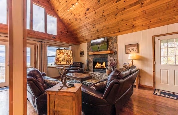 Detta unika, som ny, vit tall, 2/2 timmerstuga är helt perfekt på alla sätt! Katedraltak, sten öppen spis, bekväma rum, stora badrum, trägolv, fullt utrustat kök, bra rum med bildfönster, linda runt däck! Stugan är utrustad med sängkläder/handdukar och det mesta du behöver för att laga en måltid. Ta bara med matvaror och personliga föremål. Denna stuga är också handikappanpassad. WIFI är nu tillgängligt. Släpp taget, varva ner, återställ!