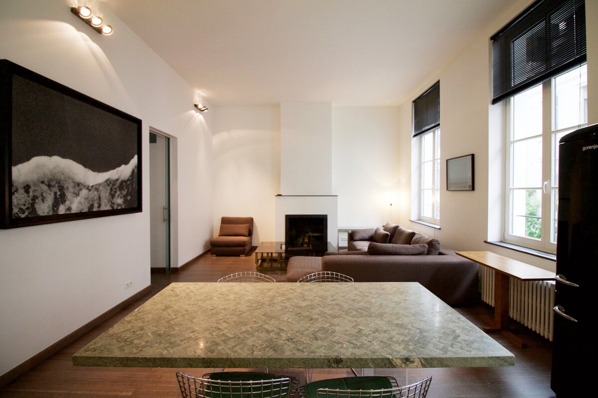 Vacker, smakfullt möblerad, bottenvåning i ett periodhus, marmor spisar, trägolv, stuckaturdekorerade pelare och högt i tak. Privat trädgård. Helt rökfritt. Lugn väg i bostadsområde. Gångavstånd från EU:s kontor, stadens centrum och kollektivtrafiknav. 400 meter till tunnelbanestationen Art-Loi, 200 meter till tunnelbanestationen Maelbeek 20 minuter från flygplatsen, 10 minuter från Midi järnvägsstation. <1 km från Grand Place, Place du Sablon och andra sevärdheter.