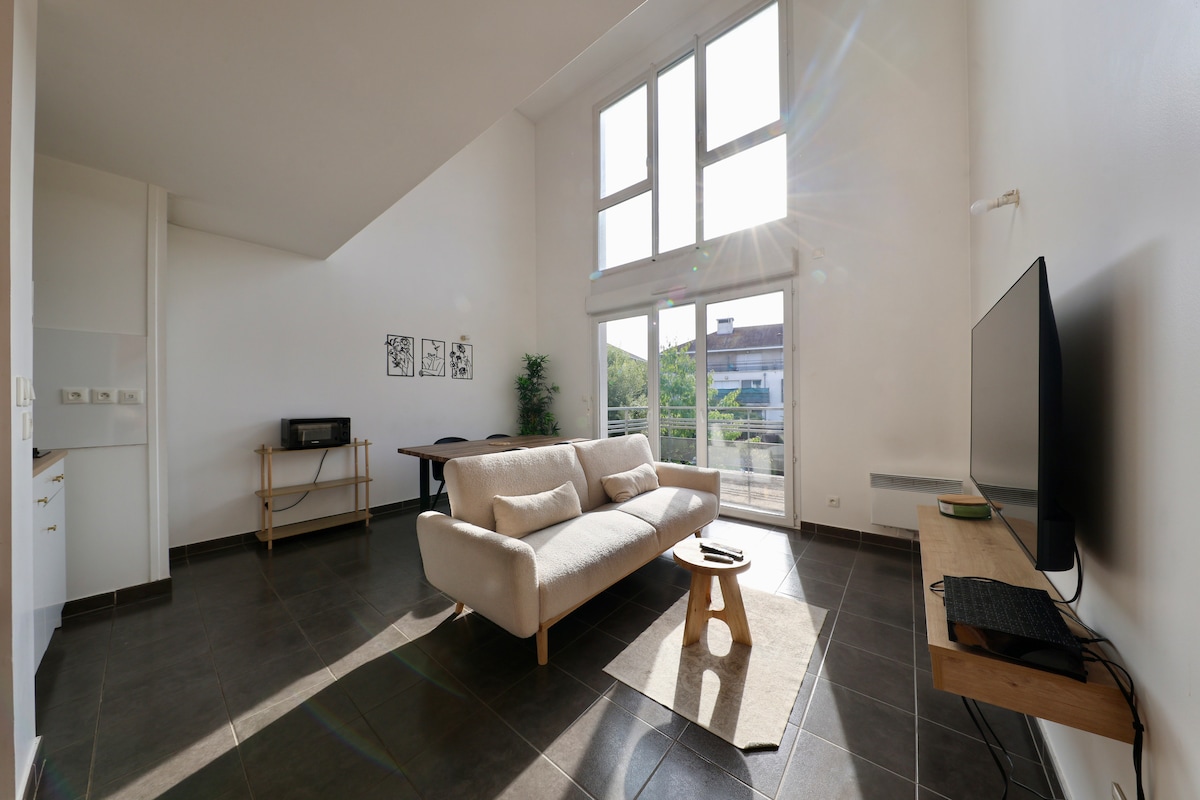 Faites une pause et détendez-vous dans ce paisible appartement au calme. Situé au premier étage, ce spacieux T2 de 43 m² se veut votre refuge idéal. Son séjour décoré avec goût est propice à la détente et comporte un canapé convertible en couchage Queen size de 160 x 200. La cuisine est entièrement équipée et la salle de bain est lumineuse. Enfin, la chambre comporte un lit Queen size de 160 x 200 et pour le travail, un bureau est à votre disposition. Détendez-vous, vous êtes chez vous !