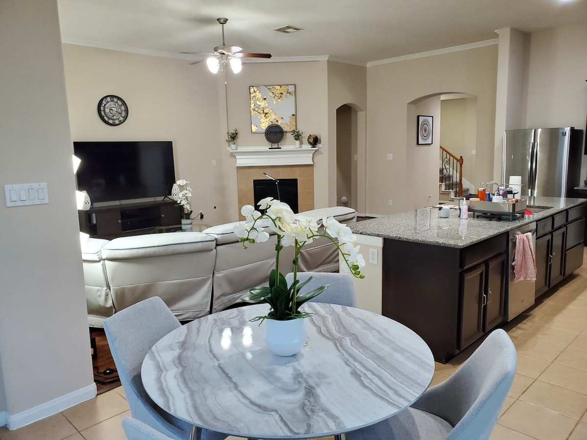 Ta med hela familjen! Välkommen till din lyxiga tillflyktsort i Richmond, Texas! Detta moderna hem erbjuder: • Hemmabio för filmkvällar • Två rymliga vardagsrum • Fullt utrustat öppet kök • Master Suite Downstairs • Tre sovrum på övervåningen • Dedikerat studierum • 6-sitsig matplats • Stor bakgård med grill • Garage med två bilar Beläget bara några minuter från Downtown Richmond, Cultural Arts District och de bästa restaurangerna. Boka nu för en oförglömlig vistelse!