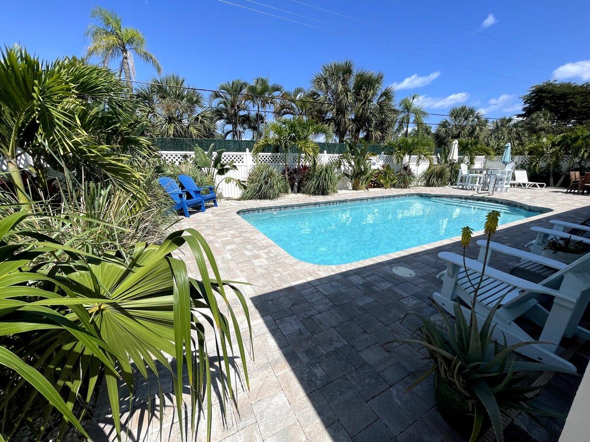 4 sovrum/2 badrum. Sovplatser 12-perfekt för att underhålla 2 familjer. Mindre än 10 minuters bilresa till stranden och 5 minuters promenad till Inter-coastal vattenväg längst bort på vägen. 5 minuters promenad till restauranger och shopping. Privat pool, gott om uteservering, propangrill, utomhusveranda med TV och fullt utrustat kök med bar. 2 kings, 1 Queen och 6 twins. Vi tillhandahåller strandhanddukar, stolar, parasoll och boogie boards. 15 minuter från FL-flygplatsen. Höghastighets-wifi för streaming eller arbete.
