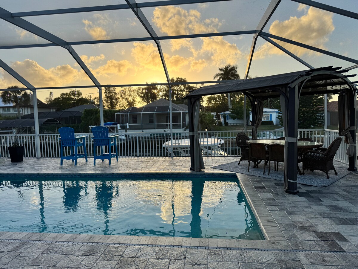 Fly till ditt privata tillflyktsställe vid vattnet i Fort Myers. Detta boende vid kanalen erbjuder direkt tillgång till golfen, perfekt för båtliv, fiske och avkopplande Florida-resor. Tillbringa dagarna med att kryssa på vattenvägarna, utforska närliggande öar eller njuta av lugn utsikt över kanalen från bakgården. Efter en dag på vattnet kan du koppla av i den privata bubbelpoolen med utsikt över kanalen och njuta av den avslappnade livsstilen i sydvästra Florida. Perfekt för både äventyr och avkoppling.