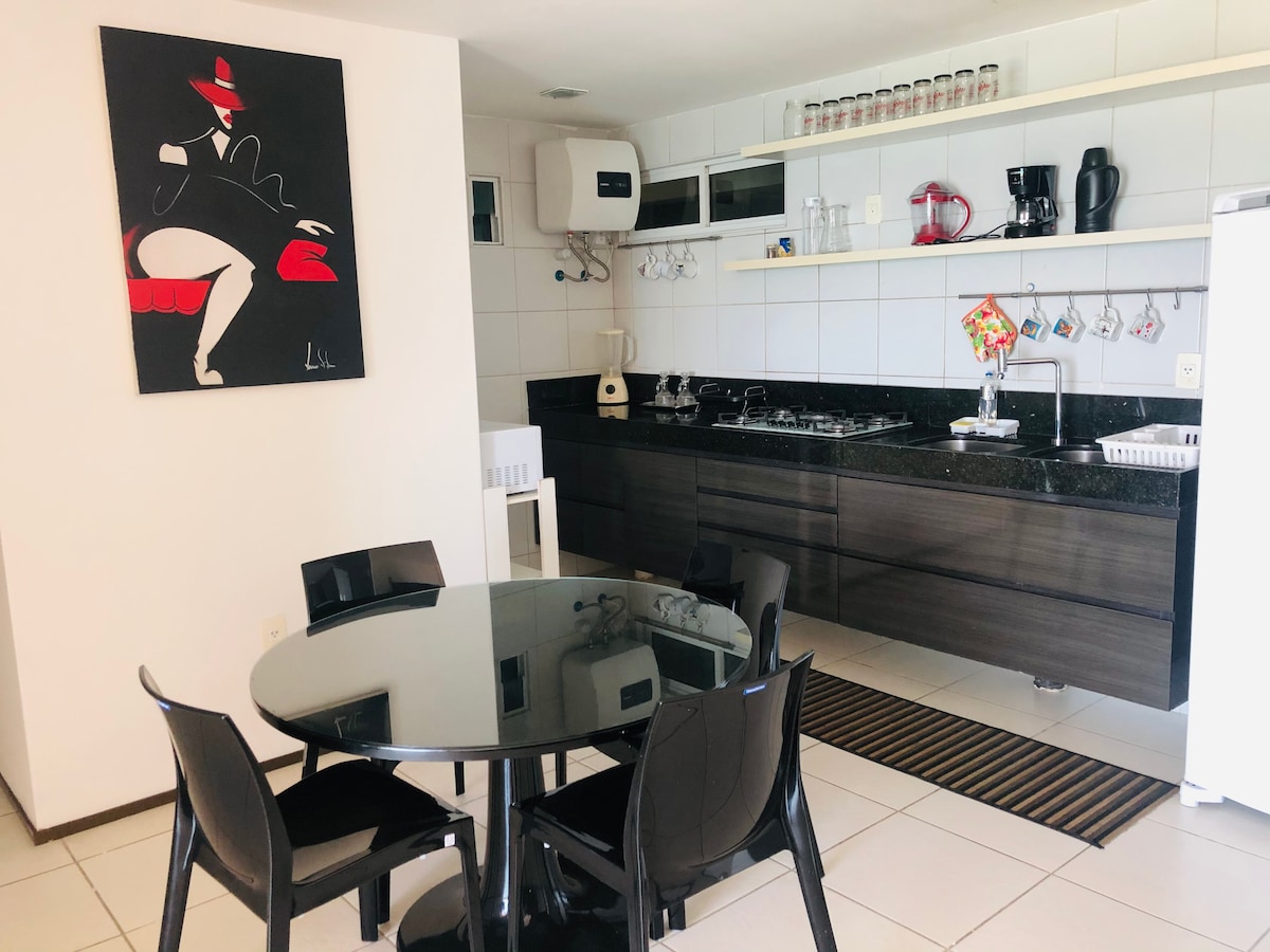 Lägenhet vid havet, mycket välutrustad och super säker, strategiskt läge vid havet nära allt, stränder, tält, stormarknader, restauranger, stadsmarknad, central marknad, hantverkscenter, shopping. Beläget i hjärtat av nyårsfesten, framför stadens deponi, i lägenhetskomplexet kan du njuta av att vara mitt i nyårsfesten och titta på showen och fyrverkerierna på ett superbekvämt sätt. Lägenheten ligger i stadens mest exklusiva stadsdel. Kom!