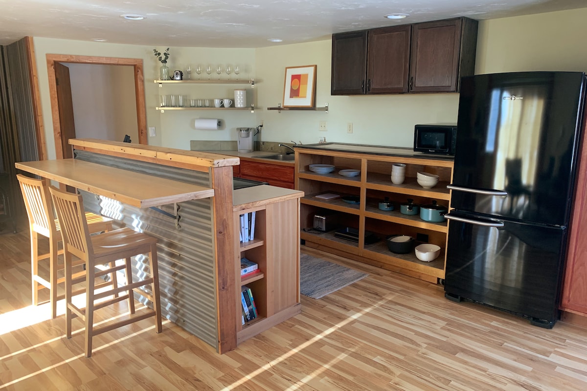 Newly constructed, 675 sq ft Sunrise Silo sleeps 4, with a queen bed in the loft and a main floor pull-out sleeper sofa. Sunrise Silo is a unique example of how rustic charm pairs perfectly with modern amenities and an indulgent experience. The stunning, unobstructed views of the Bridger Mountains and surrounding Gallatin Valley will ensure this becomes your favorite Montana vacation destination. Enjoy a rural setting while having easy access to adventure and entertainment opportunities.