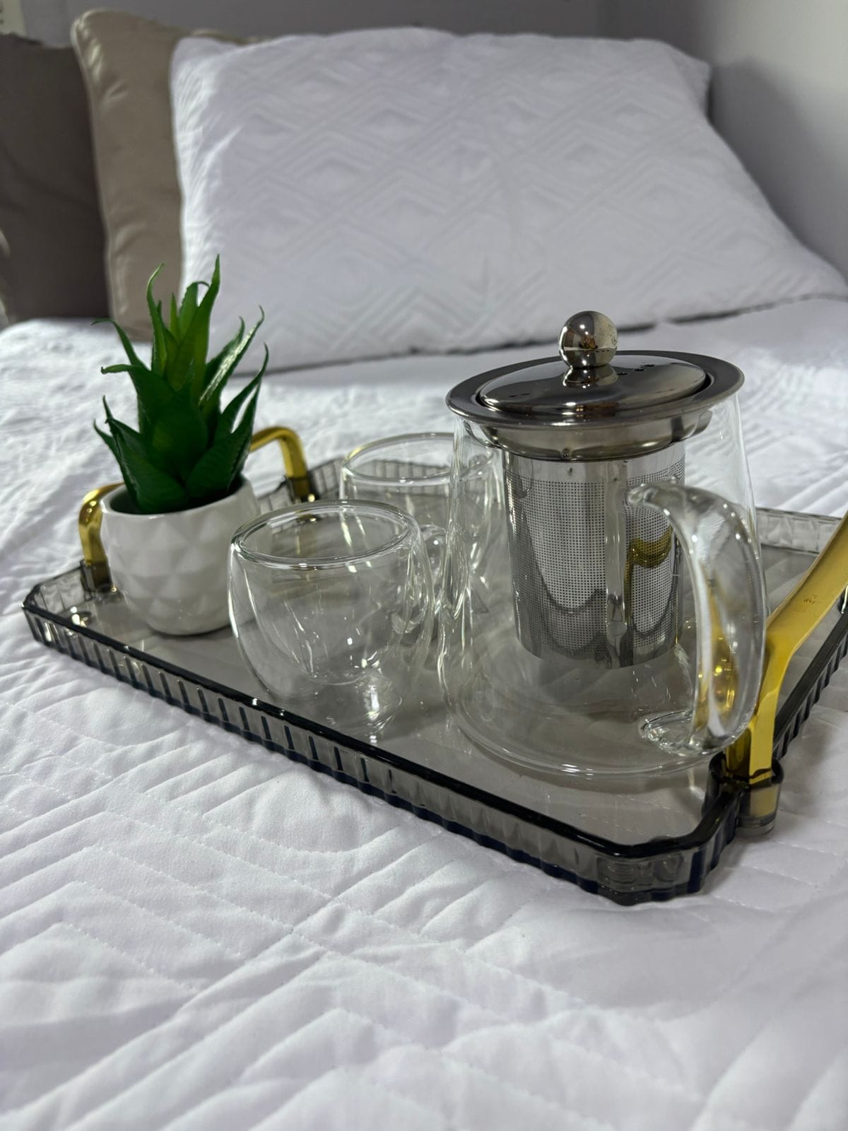 Disfrutarás de cada segundo en este increíble lugar. ¡Mi mabu es un hotel de 5 estrellas, tiene bares, restaurantes, gimnasios, sala de juegos, estacionamiento, wifi y recepción 24 hs Apartamento con balcón con una mesa pequeña y sillas frente al Parque Un dormitorio con cama King y TV por cable. Una sala de estar con sofá cama de matrimonio , TV de pago, una mesa de 4 plazas y una cocina compacta con minibar, microondas, cafetera y utensilios básicos Baño con secador de pelo, champú y jabón.
