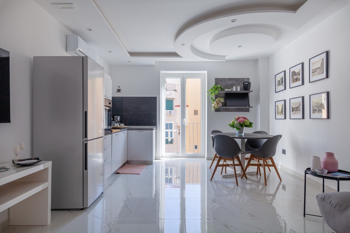 Denna nya och lyxiga Sorrento-lägenhet med havsutsikt ligger i hjärtat av Sorrento Gamla stan, på en livlig och vacker gata, där du kan hitta några av de mest autentiska människorna och historiska platserna. Perfekt för familjer eller små grupper eftersom lägenheten är komplett med 3 sovrum, 2 badrum, vardagsrum och kök, alla städade och sanerade till högsta standard av vårt specialiserade team. Lägenheten ligger också på perfekt gångavstånd från de viktigaste attraktionerna och transportförbindelserna.