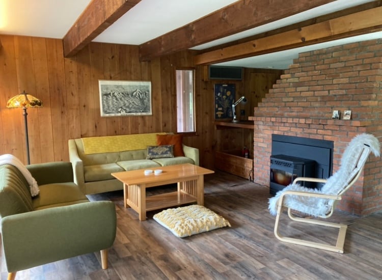 I Franconia Notch State Park i White Mountains i New Hampshire har denna familjevänliga generationsstuga tre nivåer och en rinnande bäck på baksidan. Byggd av ägaren/arkitekten i början av 1960-talet, ligger den på en sekundär väg med skogsutsikt. Utrustad med Wifi, ett bakdäck, Juliet-balkonger på alla nivåer, sängkläder, tvättmaskin/torktumlare, diskmaskin och matlagningsutrustning.