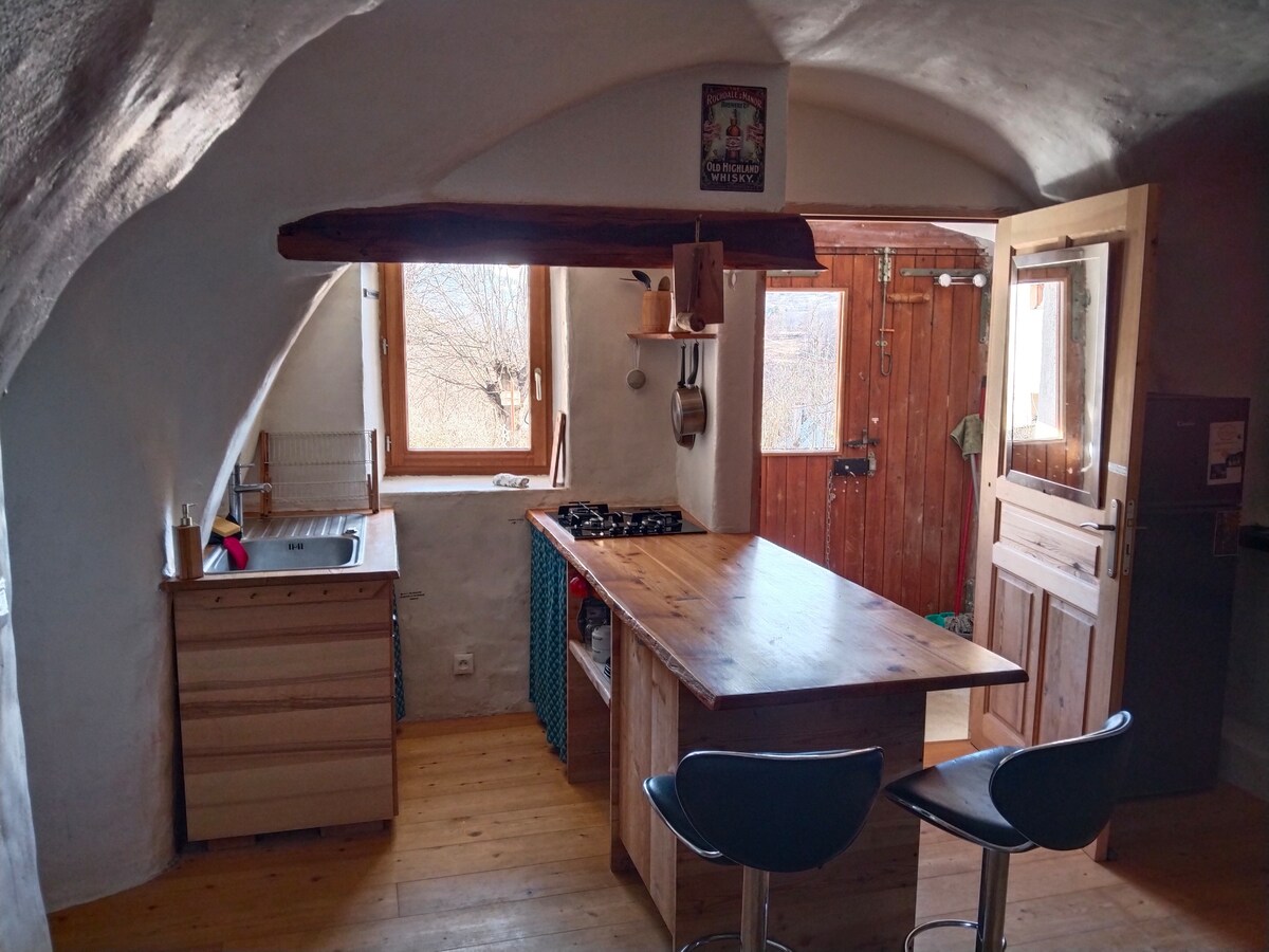 Vår vackra studiolägenhet ligger i l 'Argentière-la-Bessée, mycket vacker by vid portarna till Ecrins nationalpark. Vi är i en liten by, avlägsen, tyst, typisk och full av charm ^^ (gågata framför studion) Varm studio, utrustat kök, trevligt badrum (stor dusch), tvättmaskin, vardagsrum och liten terrass framför huset. (obebodd övre våning) 1 dubbelsäng bort i studion. Helt oberoende ingång. (RÖKFRI studio)