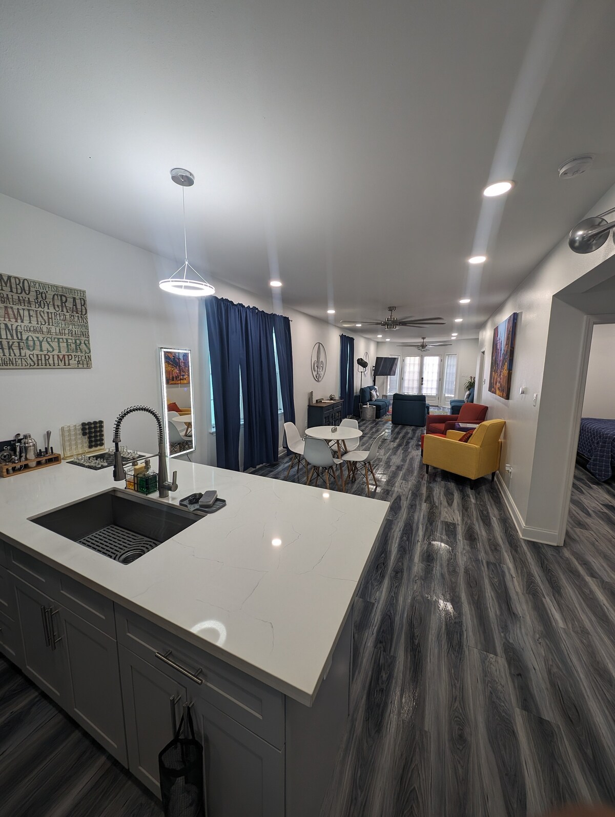 Precis renoverat, rent och ljust, med ett komplett badrum för varje sovrum! Njut av den stora trädgården med automatiskt belysningssystem på natten för avkoppling. Trippel bildskärmsarbetsstation med tangentbord och mus om du behöver starta på vägen — ta bara med din bärbara dator och hubb. 65" 4k TV för att komma ikapp på Netflix med en Super Nintendo! Parkering utanför gatan. Fullt utrustat kök och kaffestation för att starta din dag rätt. Uppmärksam ägare som kräver att gäster njuter av sin tid i New Orleans :)