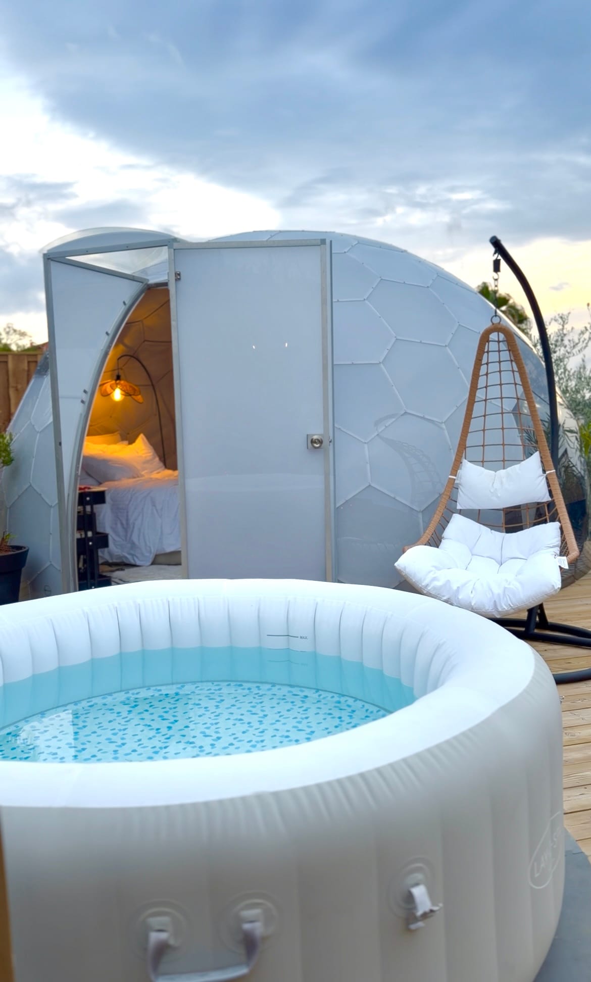 Sov under stjärnorna, bada framför kullarna, vibrera i en kokong av design och natur i Nice. Kupol i form av en 17 m² svit, 50 m² terrass, privat spa uppvärmd på vintern, queen-size säng, solstolar och utomhus matplats: allt inbjuder dig att koppla bort. Ett stenkast från staden är en romantisk och lyxig paus. En sällsynt, intim och raffinerad parentes för att uppleva den urbana flykten på ett annat sätt. Vid ankomsten får du omtänksamma detaljer och upplevelser.