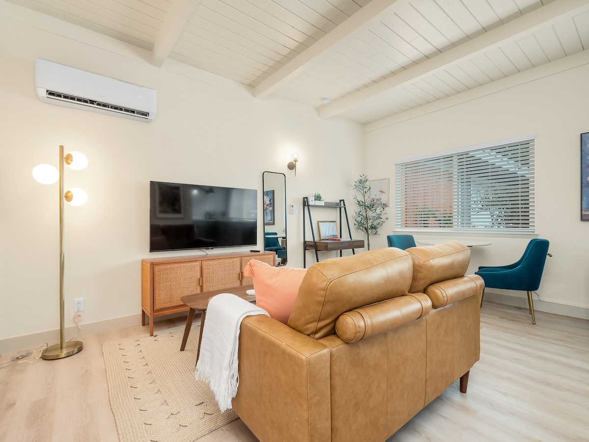 Boendet är ett vagnshus på en stor mogen tomt nära Old Fig. Utrymmet är över 600 kvadratfot och är helt oberoende med eget kök, badrum, tvättstuga, etc. Vagnshuset nås via en sidoport från uppfarten och har sin egen uteplats separat från huvudhuset. Huvudhuset delar den stora, mogna gården. Ta för dig av frukt från många fruktträd när det är säsong (äpplen, granatäpplen, grapefrukter, druvor, etc.)