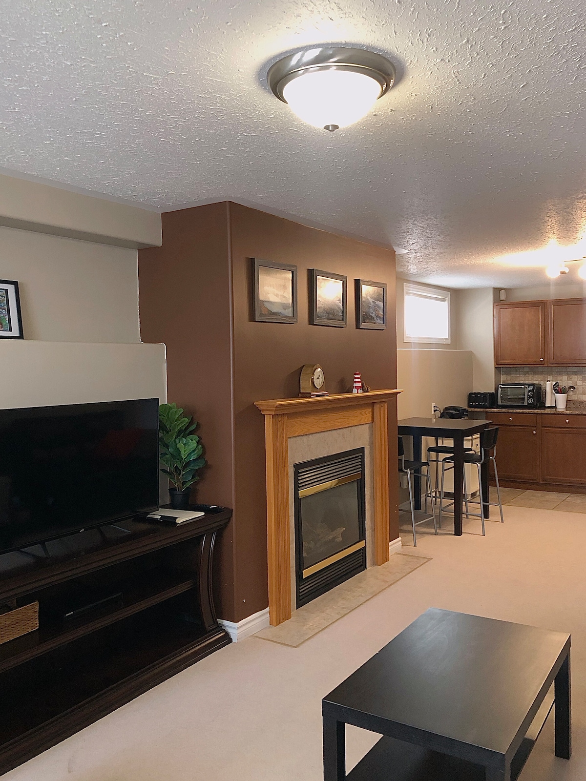Ljus och modern svit med 2 sovrum | Rustik bar + öppen spis