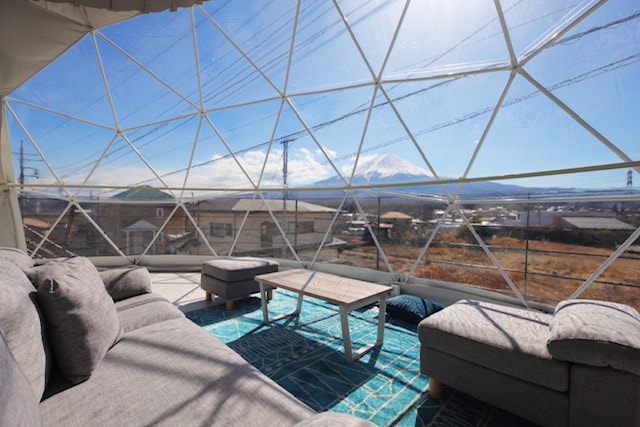 Detta ställe att bo på är udda och minnesvärt.Anno Cat Hole Glamping är en högklassig anläggning belägen i det bästa läget med utsikt över Mt. Fuji, som öppnade i juli 2022.Kupolen är 6 meter i diameter, 4,3 meter hög och 34 kvadratmeter i storlek.Det är ett bekvämt utrymme omgivet av lyxig inredning med lyxig inredning med eleganta semestrar som kan avnjutas under året.Det finns en täckt träbalkong utanför kupolen i rummet.Njut av grillspisen med gasol.Man kan också njuta av elden.