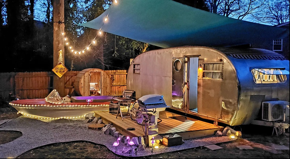 Tropisk Airstream Oasis, bubbelpool och bastu
