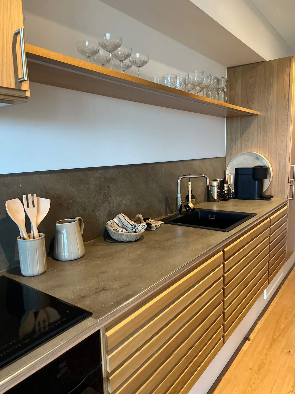En stenkast från stranden ligger den nybyggda semesterlägenheten. Från den rymliga terrassen finns en magnifik panoramavy över stranden och bukten. På en klar dag kan du tydligt se Stora Bält-bron i horisonten. Det ena sovrummet är utrustat med separat glasparti mot vardagsrummet, så att du kan njuta av havsutsikten mot öst utan att stiga ur sängen, samt eget badrum. Dessutom finns det ytterligare ett sovrum, ett rum med bäddsoffa och ett badrum. Sängarna är bäddade och det finns disktrasor, kökshanddukar och handdukar.