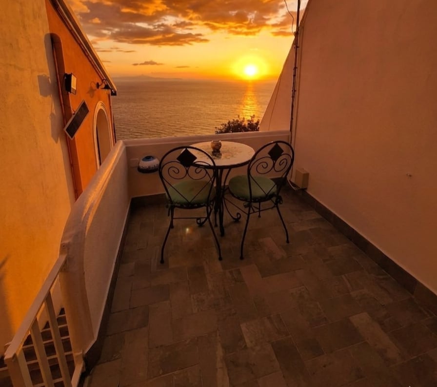Romantisk terrass med havsutsikt i Furore, Amalfikusten