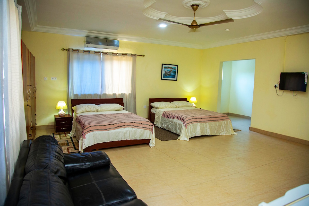 Koppla av med hela familjen i denna vackra lyxiga lägenhet med 2 sovrum i ett gated community med säkerhet dygnet runt. Beläget i ett idealiskt läge, ligger gästerna bara 30 minuter från Kotoka International Airport och en kort bilresa från Achimota Mall, Melcolm Shopping mall. och Palace shopping mall. Denna lägenhet är utformad för komfort och kommer verkligen att vara ett hem hemifrån