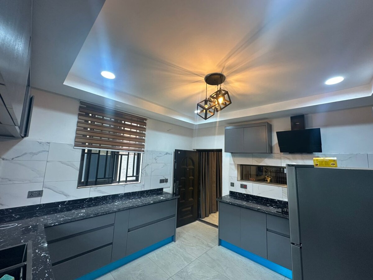 Upptäck den perfekta blandningen av komfort, bekvämlighet och lugn i vår lägenhet med 1 sovrum belägen i en lugn och fridfull enklav på West Legon. Det är perfekt för singlar och par som letar efter en lugn vistelse. Det inkluderar ett stort sovrum med eget badrum med en lyxig dubbelsäng, ett välutrustat kök, en rymlig och mysig lounge, 24 timmars säkerhet, en reservgenerator. Det finns butiker och restauranger inom gångavstånd från lägenheten. Ett hem hemifrån, bokstavligen!