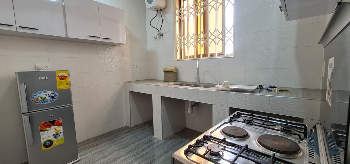 Ett hem hemifrån. Lugn, fridfull och luftig. Du kommer att älska det. 3 minuters promenad till Nududu Restaurant och en polisstation. 5 till 8 minuters promenad till en huvudkorsning där banker, tvättställen, frisörsalonger också finns. 6 minuters bilresa till KFC, Tayiba & Papaye Restaurants, en pizzeria och Legon Botanical Garden. 11 minuters bilresa till Atomic Junction där du kan hitta massor av restauranger, stormarknader, butiker, apotek och University of Ghana. Kom och utforska Ghana i detta unika boende.