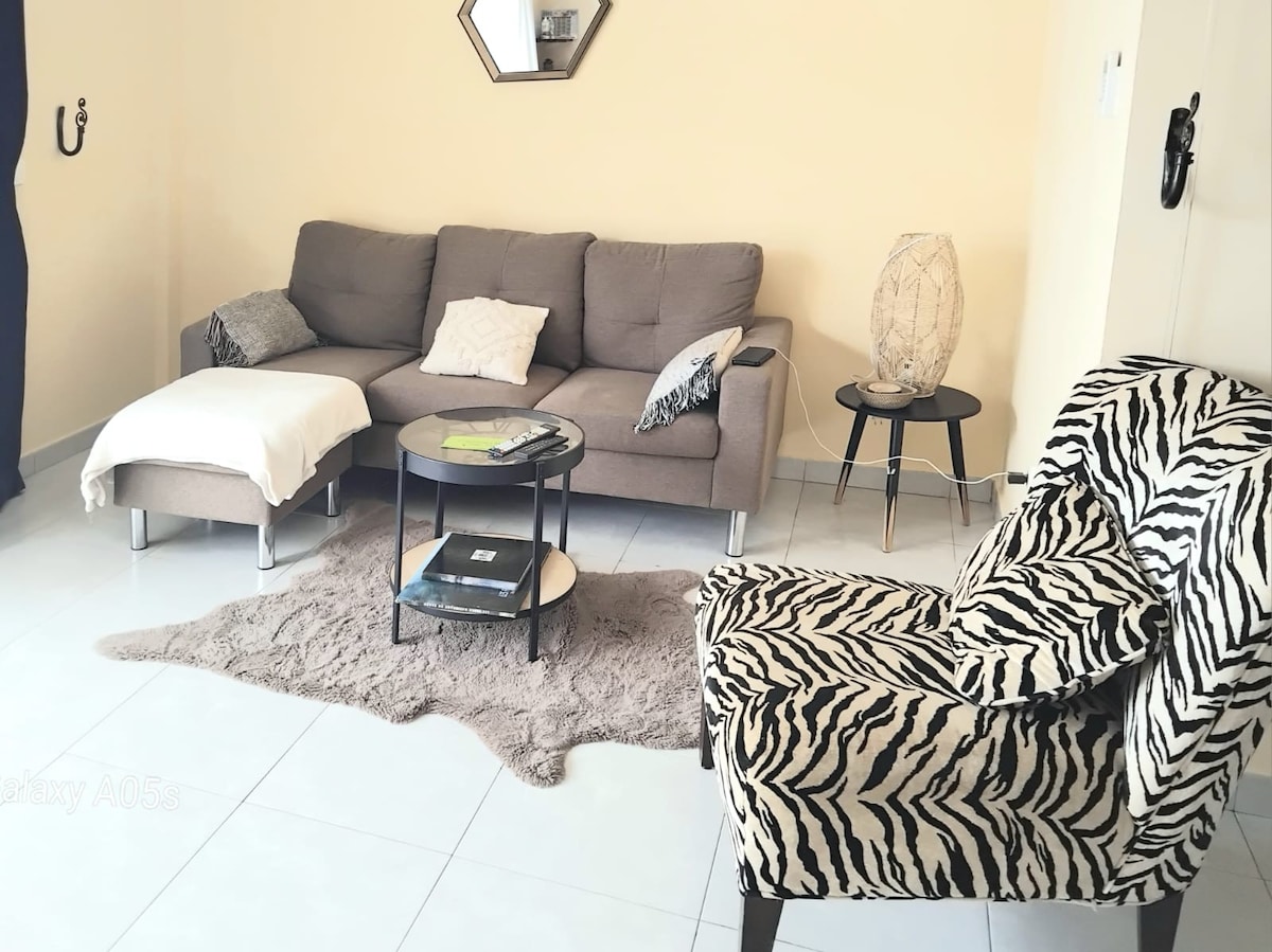 Séjournez dans ce magnifique et coquet appartement de deux chambres Cosy, Ht Standing, vue sur l'aéroport, bordure de route goudronnée. 2ème étage.Toutes commodités. Moins de 10 min de l'aéroport. Deux min de la route de contournement. Cuisine moderne et complètement équipée. Mission de travail, Tourisme, escapade ou évasion. TV HD connectée. Wifi F.O. Grand parking. Gardien . Découvrez le, vous allez l'adorer. Comme à la maison simplement. Très bien aéré. Nous vous y attendons