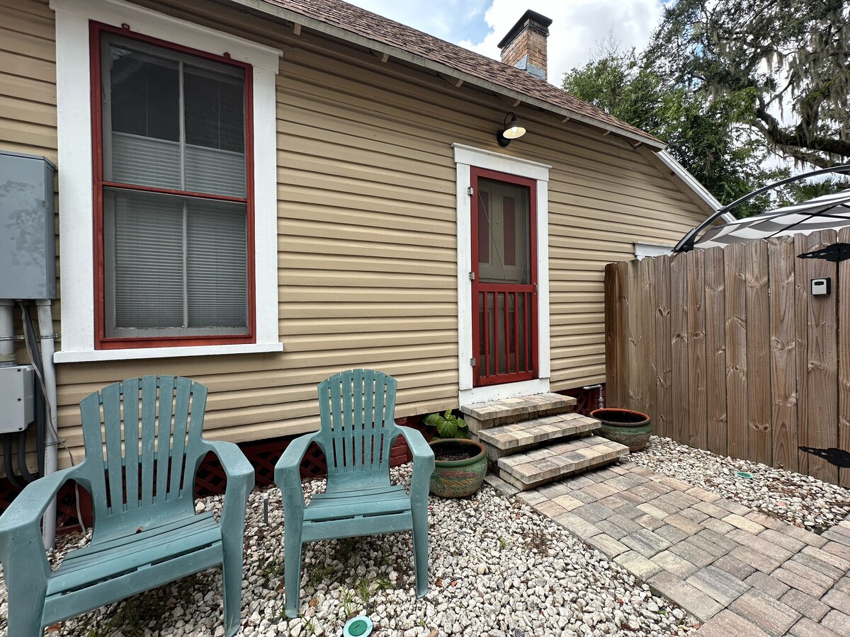 NYRENOVERAD — Njut av din vistelse i Gainesville i denna moderna studio från mitten av århundradet 0,5 miles från UF och 2 miles från UF och HCA sjukhus. Ingen detalj förbises i detta vackert designade fristående gästhus med ett överflöd av naturligt ljus, exklusiva ytor och oändliga bekvämligheter — kokvrå, minikyl/frys, smart-TV och mycket mer! Detta bekvämt belägna privata och lugna utrymme i hjärtat av Gainesville är perfekt för alla som besöker för bara en natt eller några veckor.