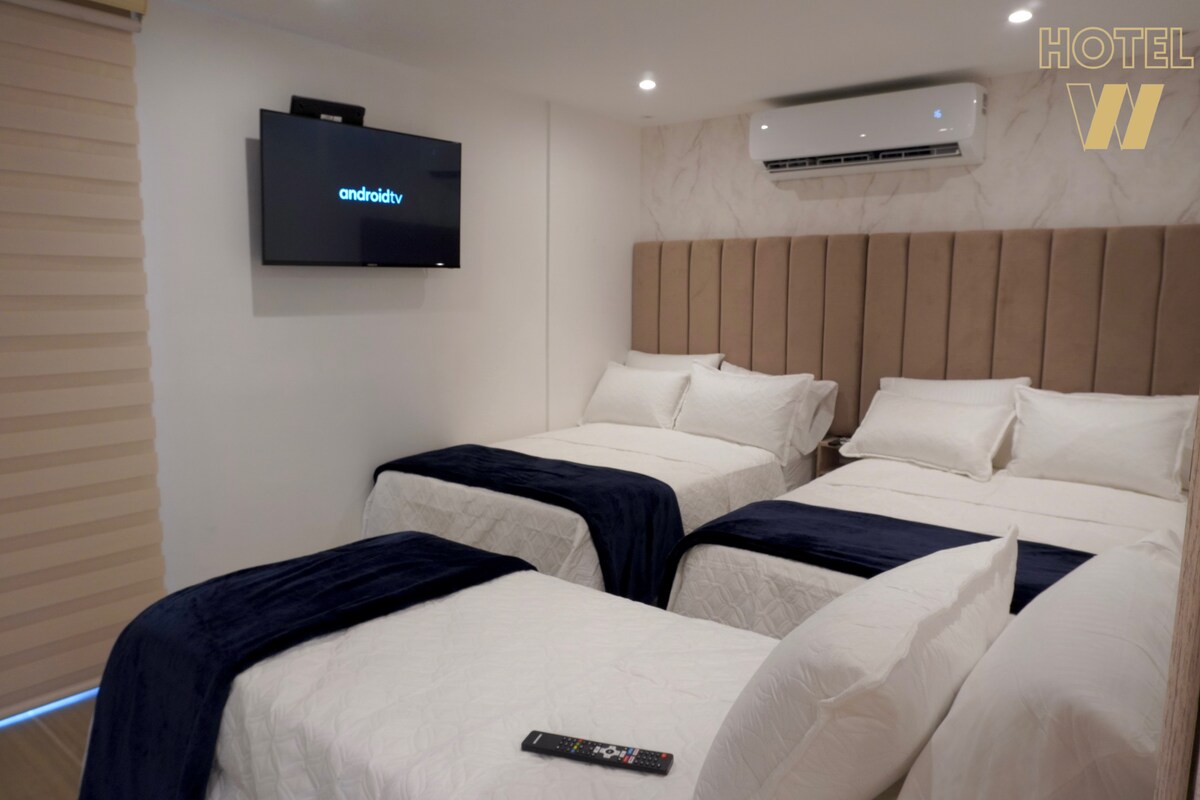 Habitación doble, cuenta con baño privado y todo lo necesario para una estancia confortable. Ubicado estratégicamente a solo 3 calles de las playas de El Rodadero y a una cuadra del Centro Comercial Arrecife, con fácil acceso a supermercados, restaurantes y zonas comerciales. Perfecto para quienes buscan descanso, buena ubicación y practicidad durante su visita a Santa Marta