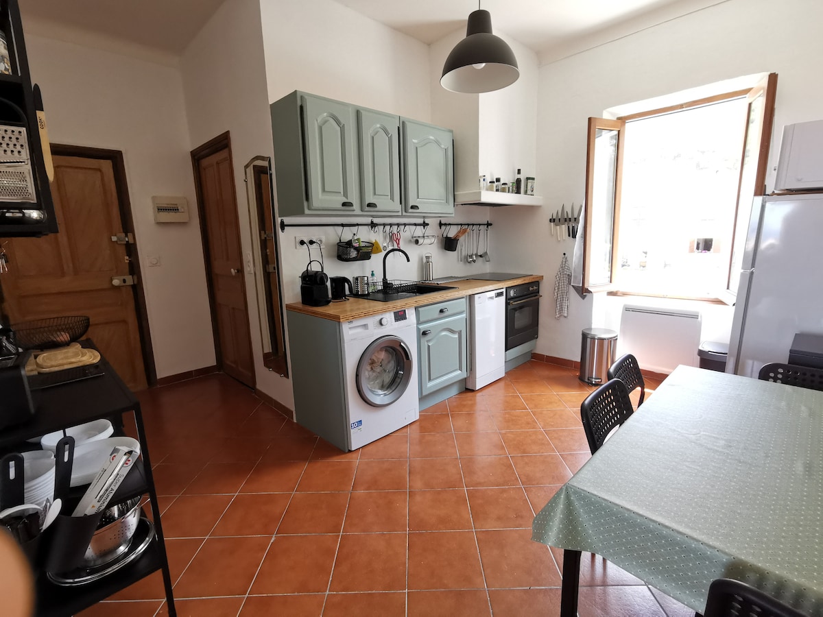 Detta 80 m2 boende på andra våningen har en oberoende ingång bakom huset , en 750 m2 trädgård i skuggan av mandelträden med solstolar och trädgårdsmöbler. Det passar bra för en familj , ett par med 2 barn eller två par. Huset ligger på toppen av byn, på "mare e monti" -vägen ligger nära barer ,restauranger, butiker.