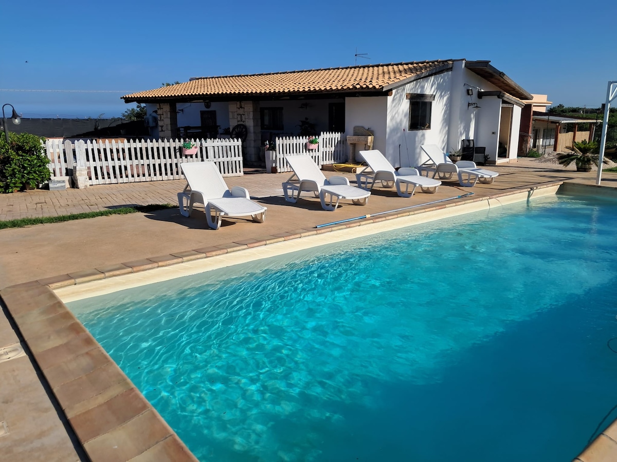 Upplev en oförglömlig vistelse i denna villa omgiven av natur med en spektakulär utsikt. Du kan äta middag på de stora panoramavernandorna, koppla av i tallskogen, tända grillen, vedugnen och eldstaden eller dyka ner i den vackra poolen med panoramautsikt. Utrustad med alla bekvämligheter, med snabbt Wi-Fi och obegränsade GB, 2 flerspråkiga smart-TV - inklusive Netflix och Amazon Prime. Några minuters bilresa från stränderna, 20 minuter från Siracusa och Noto och 40 minuter från flygplatsen i Catania.