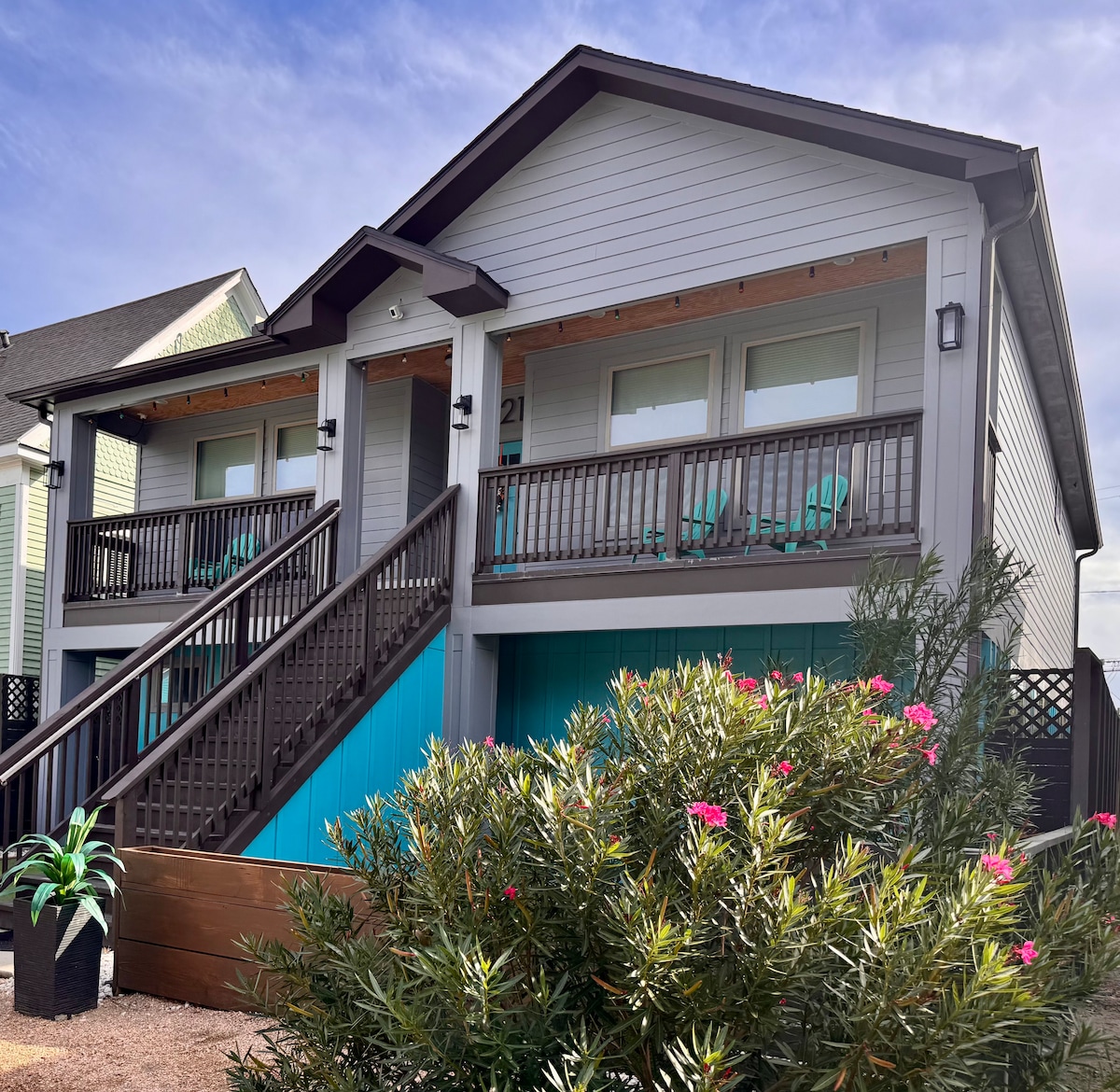 Wood driftwood accents throughout celebrate nature while the nautical accents highlight Galveston's dichotomy of natural beauty with a storied industrial and nautical history. The highlight is the Driftwood light fixture and pool table guaranteed to create unforgettable memories together. Located blocks from Gulf Beaches, the Seawall, and iconic Seawall restaurants, bars and nightlife. Book direct on the Gulf Siesta site for a discount.