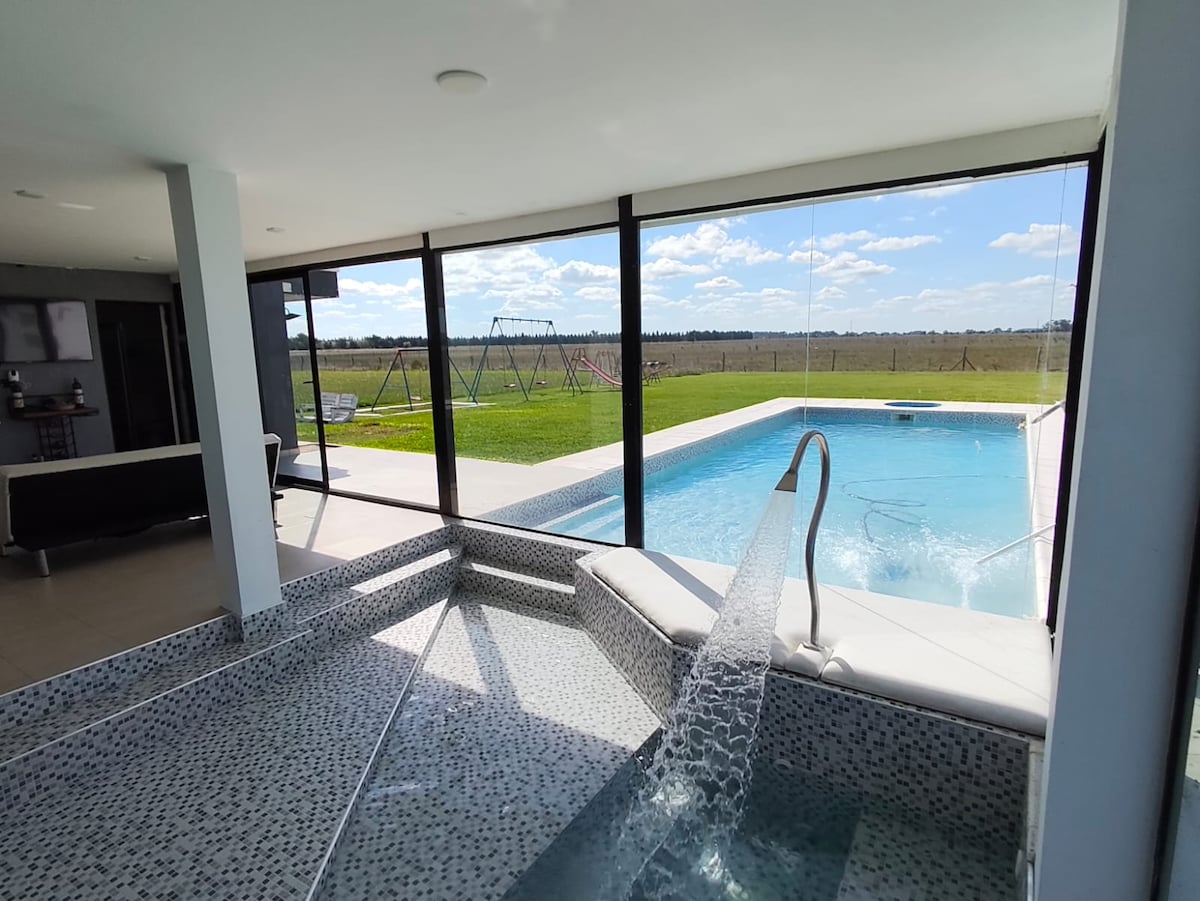 Perfekt boende för att dela med familj eller vänpar för att tillbringa en helg, en vecka eller en månad. Hus med ett oslagbart läge, framför lagunen, på asfalt. För fans av vattenaktiviteter och mateadas med utsikt över de bästa solnedgångarna. Det perfekta grannskapet för cykelturer med lugna gator med hus i Casaquintas. Vackert hus med 3 sovrum med eget badrum, kök, vardagsrum, toalett, park och pool 5 x 2,30 x 1,20 djup.