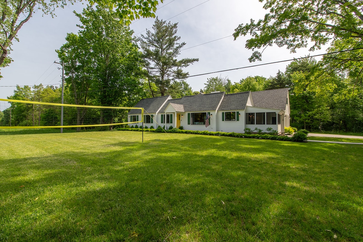 Fly till Applewood Lodge — en privat A-frame retreat bara 3 minuter från Lake Michigans Pier Cove Beach! Koppla av i bubbelpoolen under blinkande ljus, samlas vid eldstaden med vänner eller varva ner i spelrumsgaraget. Denna rymliga stuga ligger på en avskild skogbevuxen hektar nära Saugatuck, Douglas & Holland och är perfekt för par eller grupper som söker komfort, stil och total avkoppling året runt!