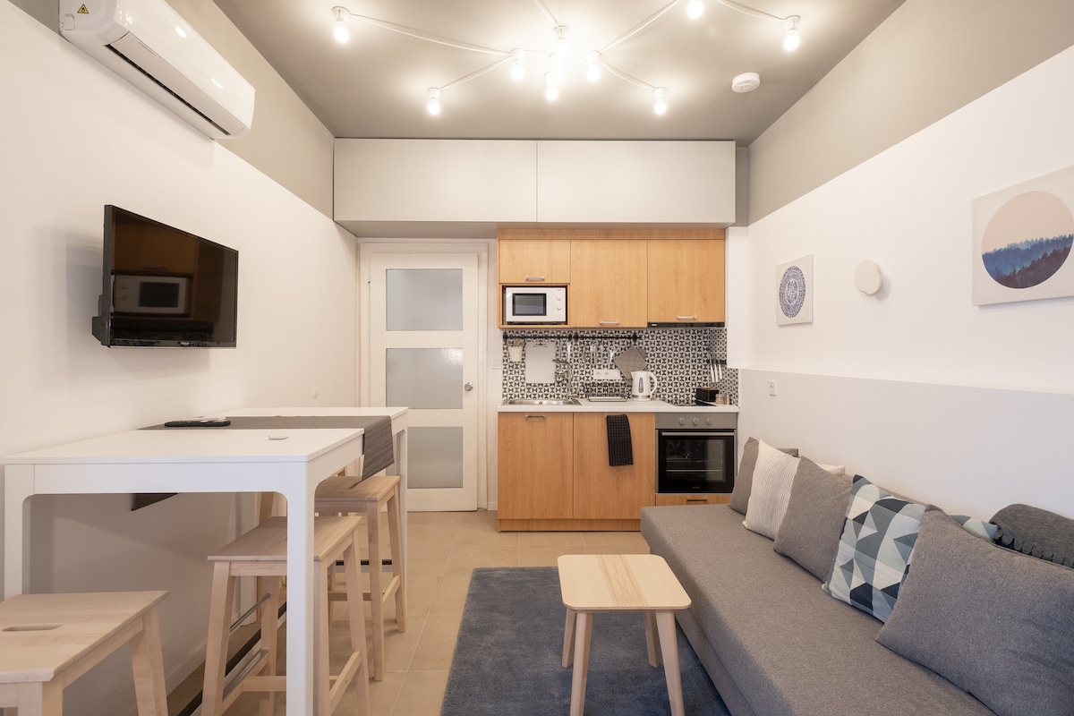 Välkommen till min vackra och mysiga studio i närheten av den välkända Pirotska str. och den gamla stadskärnan! Tunnelbanelinje 1 station ligger 5 minuter bort, vilket ansluter dig direkt till flygplatsen. Inte långt från byggnaden hittar du ett köpcentrum, stormarknad och matställen. Byggnaden är ny, med enkel tillgång och en hög grad av säkerhet, har videoövervakning och en bekväm hiss. Terrassen erbjuder en fin utsikt över den vackra gröna parken. Höghastighetsinternet tillhandahålls.