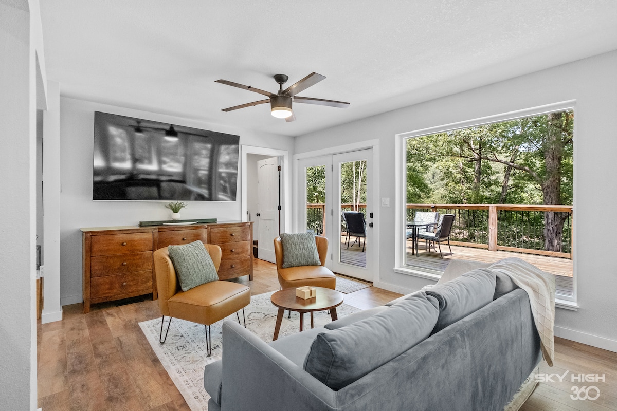 Nestled on a quiet street, surrounded by tall trees and a neat cave, your unique Beaver Lake rental awaits. Perfect for a "Great Outdoors" Family getaway, girls weekend, or a romantic escape. We can be your remote retreat, or your homebase for all the shopping and dining that Rogers, Bentonville and Eureka Springs have to offer. Play Bocce, cornhole or putt putt while friends & family sit around the fire. Our modern BoHo décor & classic cottage design creates a fun vibe for all!