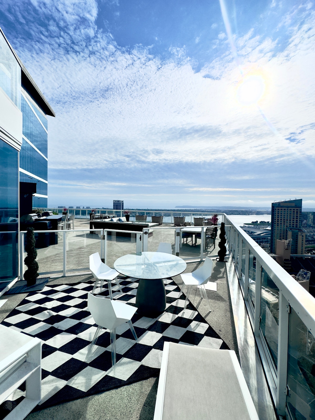 City24 är ett lyxigt hotell i lägenhetsstil, centralt beläget nära Little Italy och San Diegos flygplats. Börja din vistelse med svepande 180° utsikt över bukten från vår takterrass, och slå dig sedan ner i en rymlig, fullt möblerad svit med en dubbelsäng, fullt utrustat kök, privat uteplats, snabbt Wi-Fi, luftkonditionering och säker garageparkering — allt du behöver för att känna dig som hemma.