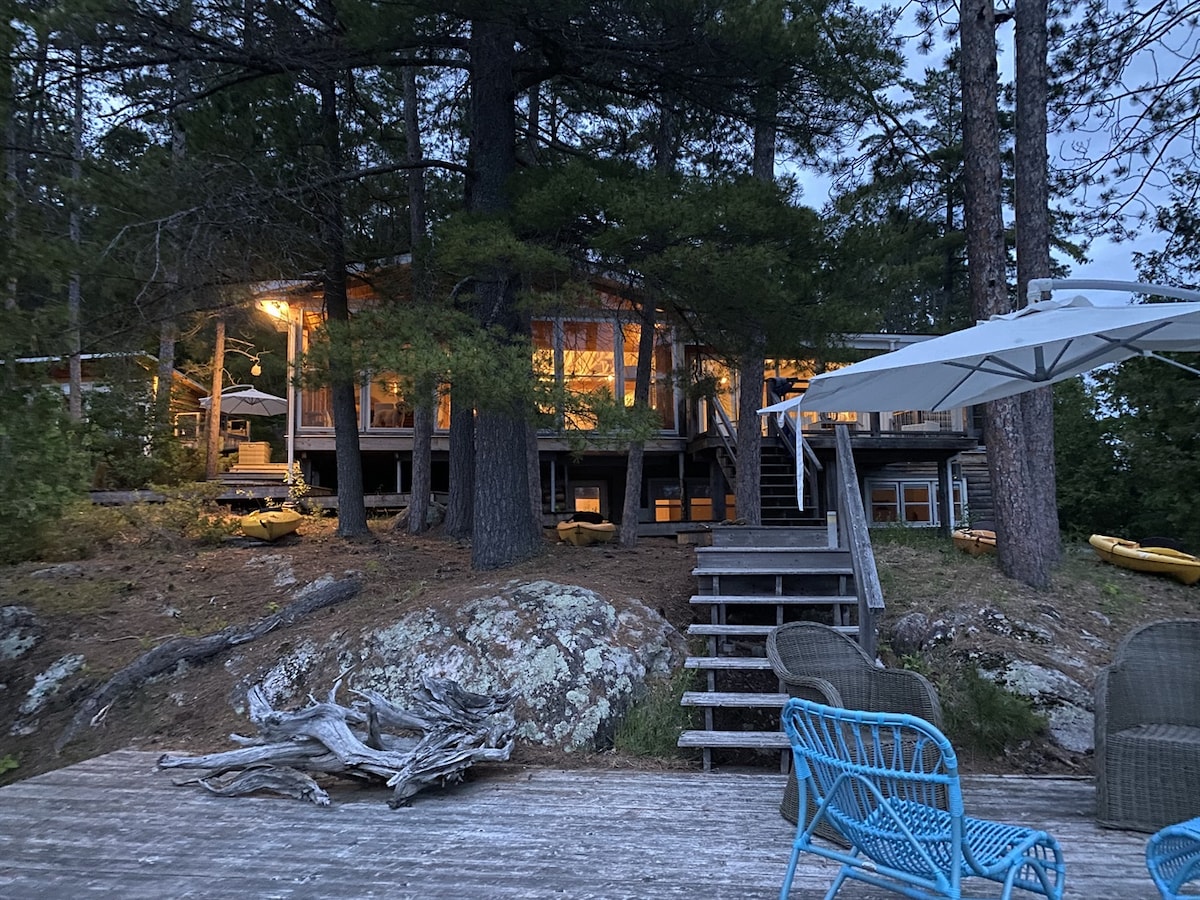 Välkommen till vår stuga vid vattnet inbäddad i ett lugnt område i Wakefield på en 2 hektar stor fastighet. Den två våningar höga 1 800sf stugan har noggrant utformats för att integreras med naturen med stora fönster från golv till tak i hela stugan. Kom och koppla av och ladda upp i naturen. Massor av aktiviteter att göra: simma från bryggan, kanot/kajak, fisk, cykel, golf, skidåkning, utforska Gatineau Park, Nordik Spa, etc. (CITQ#304057. Vi betalar alla försäljnings- och inkomstskatter till provins-/federala myndigheter)