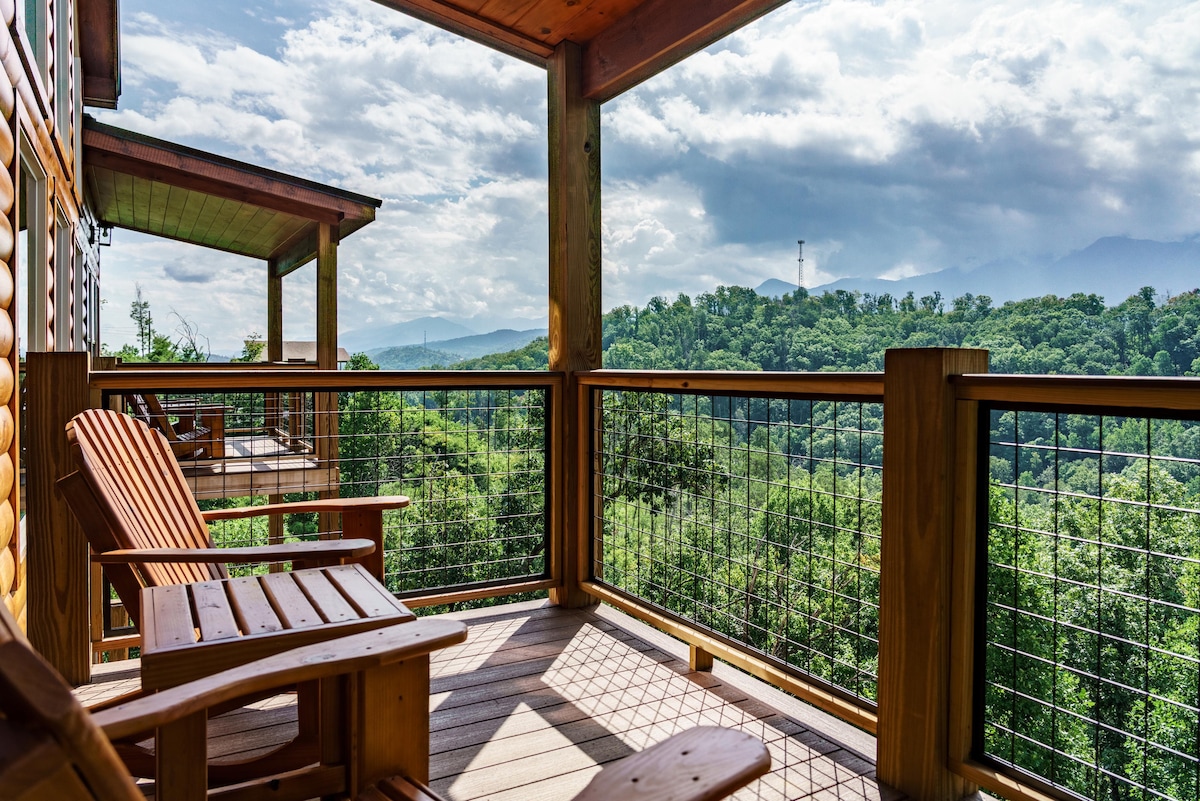IG/FB/TikTok: SixDiamondsCabins UTSIKT!! Endast några minuter till allt – ANPASSAD LYXIG BERGSTOPP villa designad av kända arkitekter. 2+ tunnland, 5800+ SQFT & många däck/solrum mot Mt LeConte. Helt ny 7-personers BUBBELPOOL, 100'' projektor BIO, 7 TV-apparater, SPELRUM med pool, pac-man, pingis, golden tee, pinball, buck hunter & cornhole, Harry Potter fängelsehåla, bluetoothmusik, 3 ELDSTÄDER/ELDSTÄDER, bekväma sängar, höghastighets WiFi, parkering, och enkla vägar.