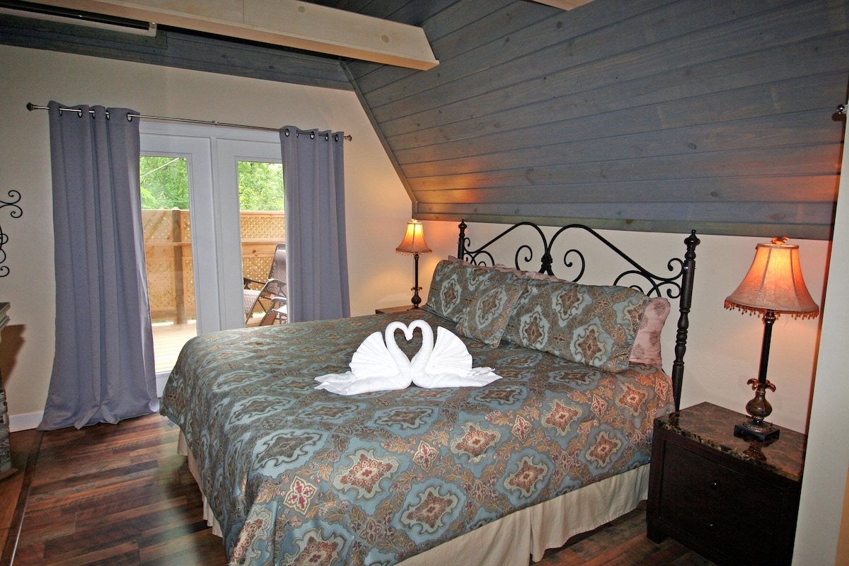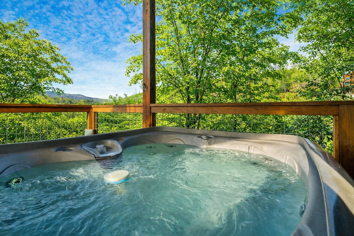 Ditt eleganta bergsäventyr väntar! Avalon Ridge är en hisnande, privat, modern stuga, högt uppe i Smoky Mountains, med oöverträffad utsikt! Det stora sovrummet har en öppen spis i sten och ett lyxigt badkar, loftet i skogen är omgivet av gammalt lövträ och fönster från golv till tak visar utsikten från var som helst i stugan! Njut av soluppgången från frukostplatsen, eller varva ner med ett lyxigt bad i den privata bubbelpoolen. Boka denna tillflyktsort på bergstoppen idag!