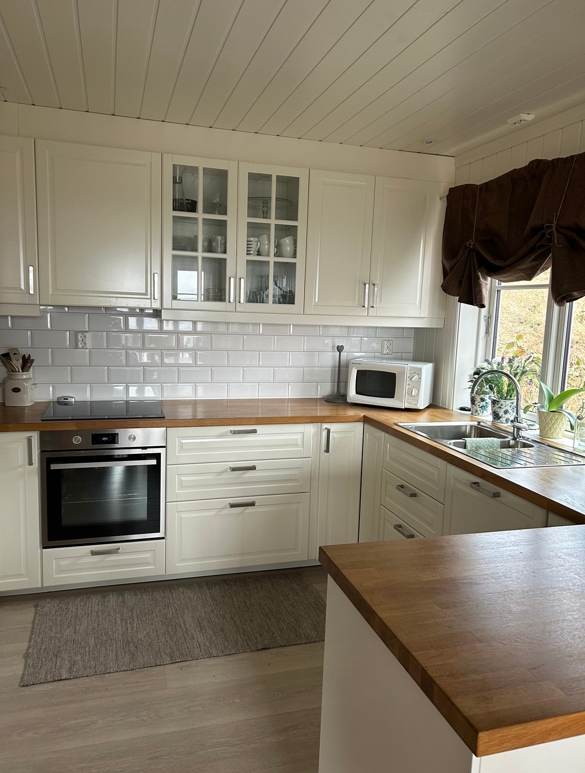 Stuga på ca. 60 kvadratmeter med 2 sovrum. Eget kök med porslin. Stugan ligger i ett lugnt område med 3 andra stugor. Stugan ligger på en privat väg och området är lugnt och fridfullt. Det finns grill vid stugan för fina kvällar med solnedgång i fjorden. Det finns en öppen spis i vardagsrummet och den kommer med ved som kan användas om det blir kallt. Det finns även elektrisk uppvärmning i alla rum. Sänglinne och städning ingår i priset.