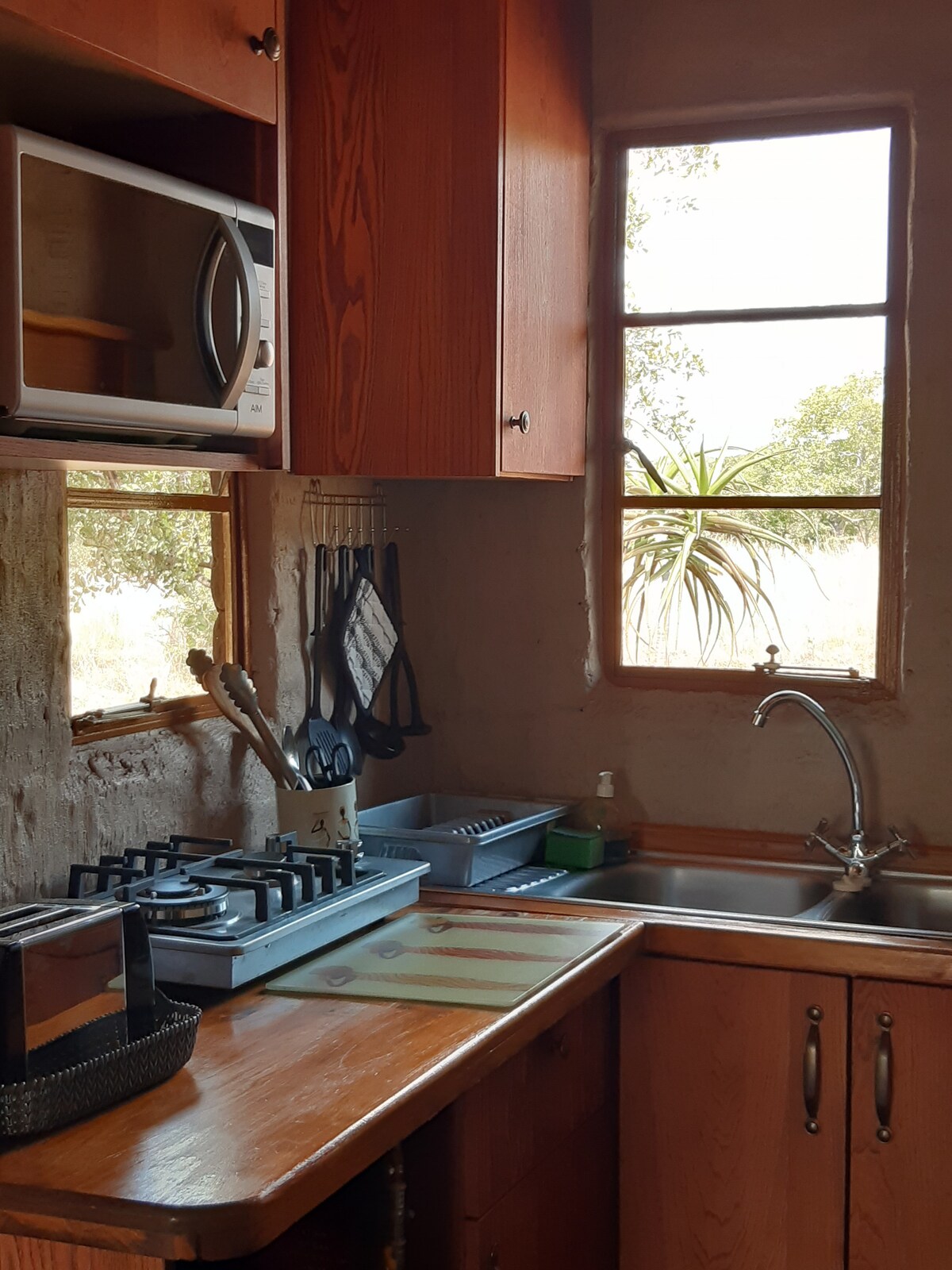 Ta en välförtjänt vila i vår mysiga stuga som är helt utanför elnätet. På bottenvåningen hittar du ett fullt utrustat kök med en gasspis/ugn och en stor kyl/frys samt matbord och en lounge. Badrummet är på bottenplan. Ta de branta stolarna upp på övervåningen där du hittar ett sovrum med dubbelsäng och stängbar dörr och på andra sidan, de två trekvartsängarna. Under balkongen finner ni ett picknickbord utomhus och en braai.
