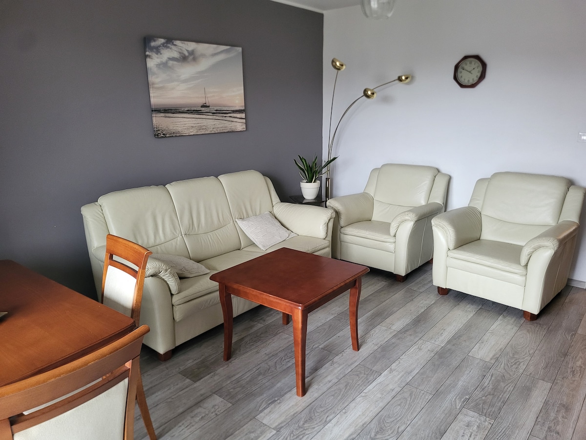 Mieszkanie znajduje się na 3 piętrze bloku z windą. Wyposażony we wszystkie akcesoria niezbędne do funkcjonowania: sprzęt kuchenny, pralka, żelazko, suszarka. W sypialni jest podwójne łóżko. W pokoju z aneksem kuchennym jest dwuosobowa sofa z funkcją spania. Apartament przeznaczony jest dla max. 4 osób. Do centrum Gdańska (5 km) można dojechać w 8 minut autem. Niedaleko mieszkania (500 m) znajduje się przystanek autobusowy oraz tramwajowy. Do lotniska (12km) można dojechać w 10 min samochodem.