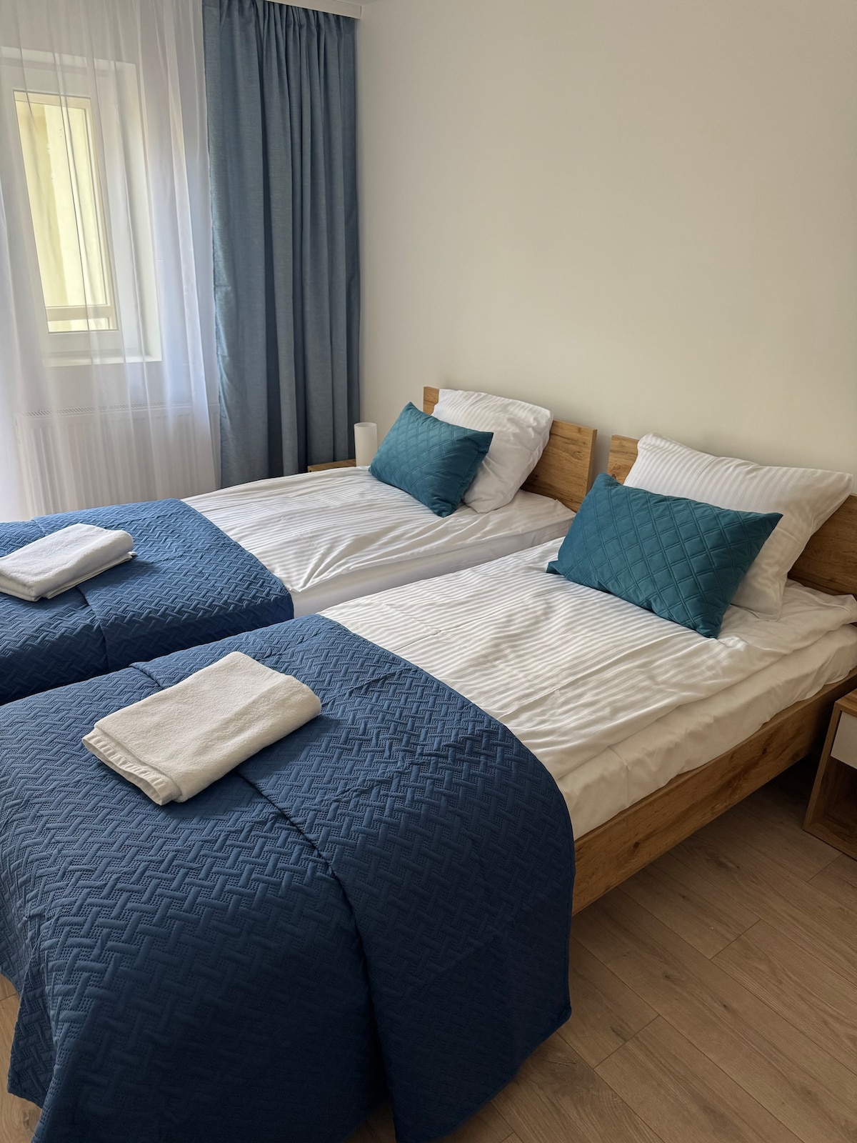 Lägenhet 2 rum - sovrum och stort vardagsrum med bäddsoffa, beläget nära de viktigaste turistattraktionerna i Gdansk. Byggnaden är omgiven av 2 vackra parker, 10 minuters promenad från centralstationen, 10 minuter från Forum Gdańsk, 15 minuter från de viktigaste turistattraktionerna i huvudstaden och Długa Street. Ok.7 minuters promenad från busshållplatsen varifrån du kan ta dig direkt till flygplatsen (buss 210). Det är perfekt för ett par eller en familj på 4 eller en grupp vänner.