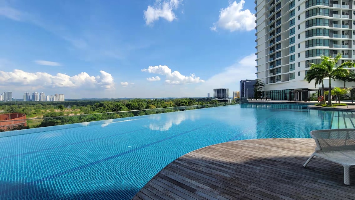 Bo högt över Sunway City Iskandar på 18: e våningen i den lyxiga Sunway Grid Residence. Denna eleganta, moderna privata enhet är en sällsynt pärla med förstklassiga bekvämligheter som tillgång till olika pooler, gym och umgåsutrymmen runt boendet. Lägenheten erbjuder vidsträckt utsikt, ett modernt kök och tre bekväma sovrum. 5 minuters promenad till X Park 10 minuters promenad till Sunway Big Box Retail Park 8 minuters bilresa till Legoland 10 minuters bilresa till Puteri Harbour Upplev Sunway City med oss och lär dig mer nedan!