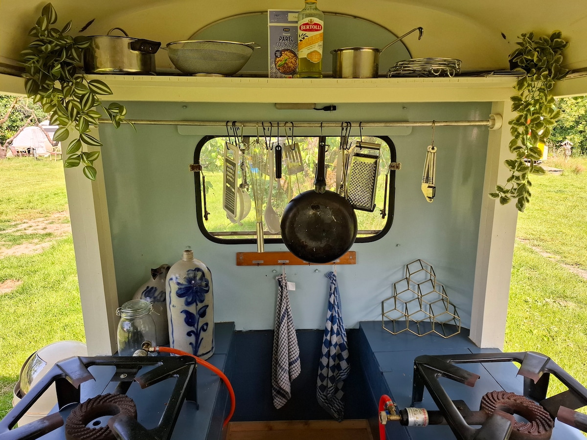 Denna husbil är rymlig och bekvämt inredd och ligger på en härlig avskild plats med panoramautsikt på vår ekologiska gård ”De Horsterhof” nära Arnhem. Det finns 2 sovrum med bra madrasser och täcken, badrum och kök med nödvändiga vitvaror. Dessutom finns det ett rymligt vardagsrum med soffor och ett matbord med 4 stolar. Här finns rinnande varmt och kallt vatten samt en radio/CD-spelare med Bluetooth och USB. Ingen Wi-Fi. Utanför på gräsmattan finns 2 bekväma stolar och ett picknickbord.