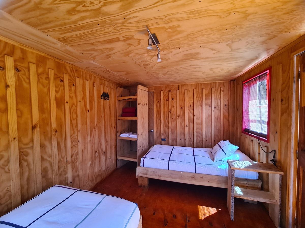 Stugan i Chile Chico, belägen på ett centralt och lugnt lugnt läge, erbjuder en perfekt tillflyktsort för dem som söker komfort och närhet till sjön. Detta boende utmärker sig för sin stora matsal, perfekt för att njuta av lokal mat, vilket skapar ett mysigt utrymme. Varje hörn av stugan inbjuder dig att koppla av. Bara några steg bort finns en underbar sjö, stormarknad och allt du behöver i en orörd by. Stugan är alltid ren och har nya sängar med 100 % bomull.