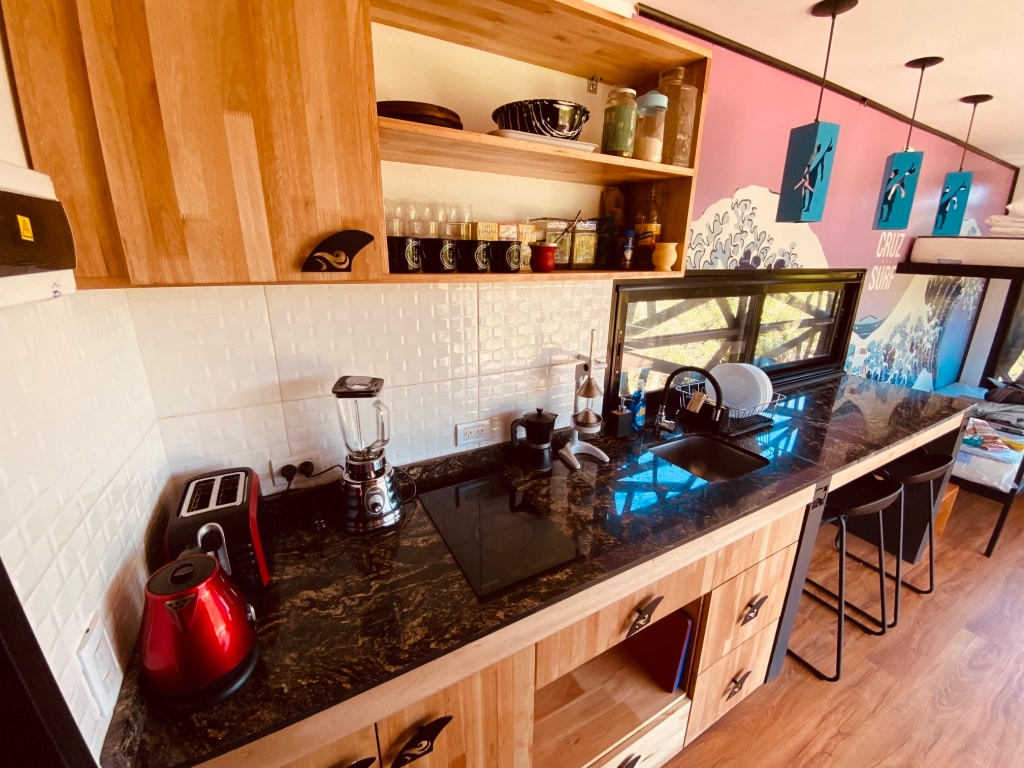 Vi skapade ett ekosystem för alla som älskar strandliv, natur och sport. Från återvunna containerhem. CRUZ DEL SURF är en stuga vid vågen. Med havet, landsbygden och solen som horisont. Garanterad säkerhet och integritet. Monteras på Paradise Beachfront på ett rosa kors från vindarna. Ett perfekt X som från luften visar varje kardinalpunkt. Cowork-område med 50 Mbps WiFi för hemmakontoret mellan havsutflykter.