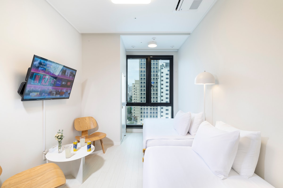 ๊ฒ์คํธ ๋ถ๋ค๊ป 1๋ฐ 24์๊ฐ์ ๊ทธ๋๋ก ์ ์ฉํด ๋๋ฆฌ๊ธฐ ์ํด ์ง์ ๊ฒ์คํธ์ ์ฒดํฌ์์ ๋น์ผ์ ์์ฝ์ ๋ฐ์ง ์์ต๋๋ค. 2๋ฐ๋ถํฐ์ธ ์ฐ๋ฐ์ ๋ณ๋ ํ ์ธ์จ์ด ์ ์ฉ๋ฉ๋๋ค ๊ผญ ํ์ธํ์ธ์^^ (๊ฒฐ์ ์ ์๋ ์ ์ฉ) ์ค๋ด๊ณต๊ฐ์ ์ฝ 15ํ ์ ๋์ ํฌ๊ธฐ์ด๋ฉฐ ๋ฐฉ 1๊ฐ์ ์์ค 1๊ฐ ๊ทธ๋ฆฌ๊ณ ์ฃผ๋ฐฉ๊ฒธ ๊ฑฐ์ค๋ก ๊ตฌ์ฑ์ด ๋์ด ์์ต๋๋ค. ๋ง๋ฃจ ์ฉ๋๋ก ์ฐ์ด๋ ๋๋ฅธ ๋ฐํฌ๊ฐ ์๊ณ ์ค๋ด์ ์ํ๊ณผ๋ ๋ณ๋๋ก ๋ฐํฌ์๋ ์ํ์ด ๊ตฌ๋น๋์ด ๋ฐ๋ฒ ํ ์ด์ฉ์ ํธ๋ฆฌํ๊ฒ ์ด์ฉํ์ค ์ ์์ต๋๋ค. ๊ฑด๋ฌผ ์๋ง๋น์ ๋๋ฌ์ธ๊ณ ๊ณ๊ณก๊ณผ ์ฐ์ด ์์ด ํ๊ฒฝ๊ณผ ํจ๊ป ๋ฌผ์๋ฆฌ, ์์๋ฆฌ ๋ฑ ์์ฐ์ ์ ์ ํ ๊ณต๊ธฐ๋ฅผ ํธํกํ๋ฉฐ ์ฆ๊ธฐ์ค ์ ์์ต๋๋ค. ๋ณธ ๋ฏผ๋ฐ์์ ๋๋ณด 20์ฌ๋ถ ๊ฑฐ๋ฆฌ์ ์ผ๋๋ด ์ ๊ตฌ๊น์ง์ ํฌ์ฅ์ธ๊ธธ์ ์ฐ์ฑ ์ ์ฐธ ์ข์ต๋๋ค. * ์ค์ง ํํ๋ง ์ ์ฉ์ผ๋ก ์ด์ฉํ์ค ์ ์์ต๋๋ค. * ํ๋ง์ ์ํ ์ต์ ์ ๊ณต๊ฐ์ด๋ผ ์ฒญ๊ฒฐ์ ์ง์ ๋ฌด์๋ณด๋ค ํ์ฐ๊ณ ์์ต๋๋ค.